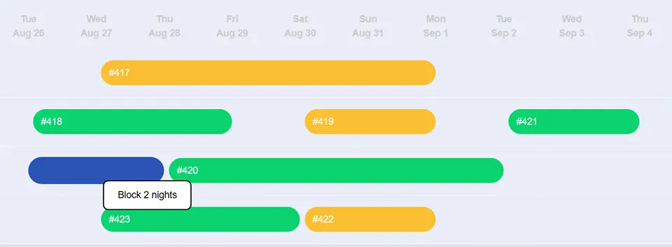 View all sites and bookings for any date range at a glace and block a site instantly.